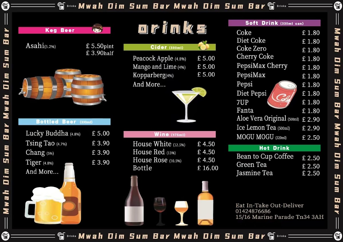Welcome to Mwah - 15 and 16 Marine Parade, a delightful gem nestled in Hastings, UK. This vibrant eatery specializes in a compact yet diverse menu that celebrates the essence of Asian cuisine. The Chow Mein selections are particularly noteworthy, with options like the flavorful Special and King Prawn, both priced at £8.00. For those with a penchant for dumplings, the Premium Dim Sum offers mouthwatering choices like Chicken Grilled Dumplings and Steamed Prawn Dumplings, each crafted to deliver authentic taste at just £4.30 and £4.95 respectively.
